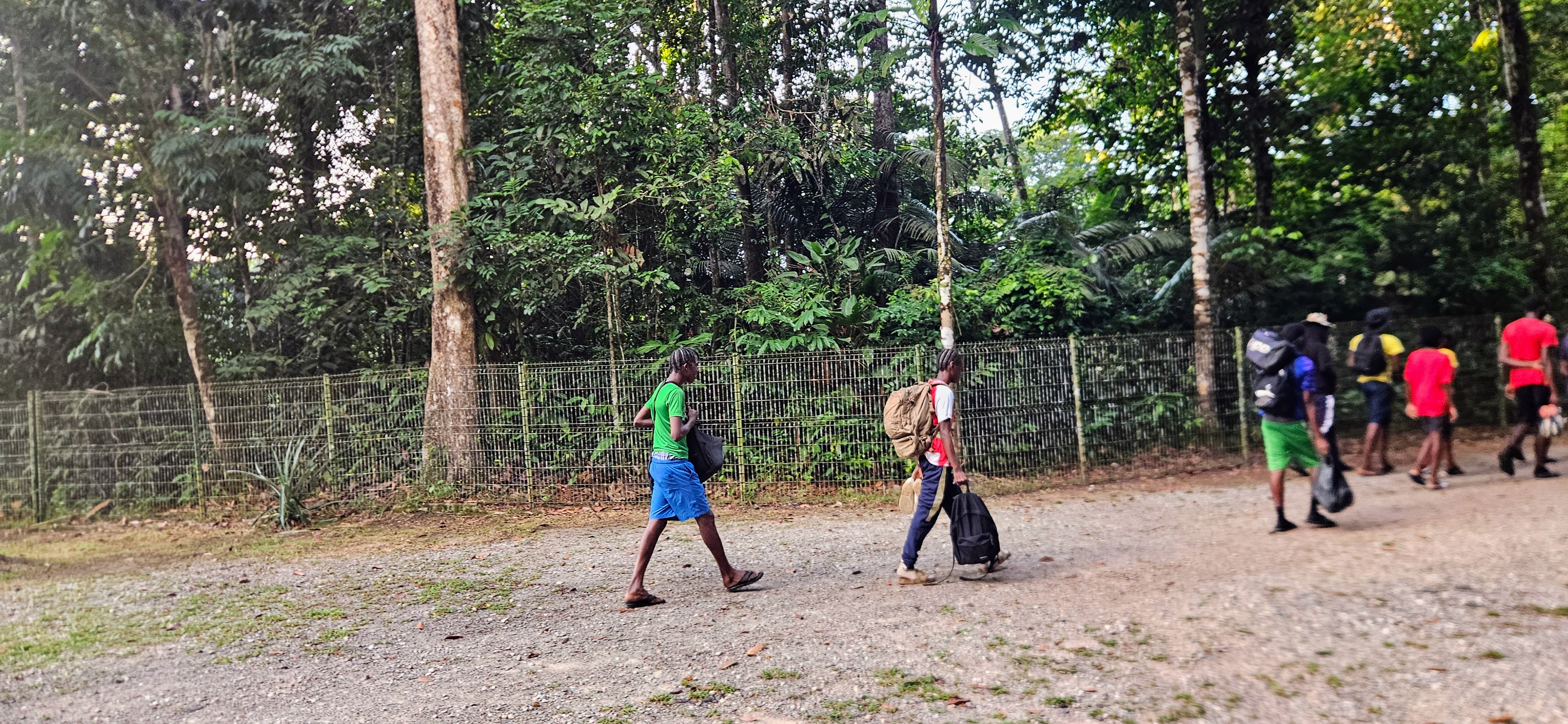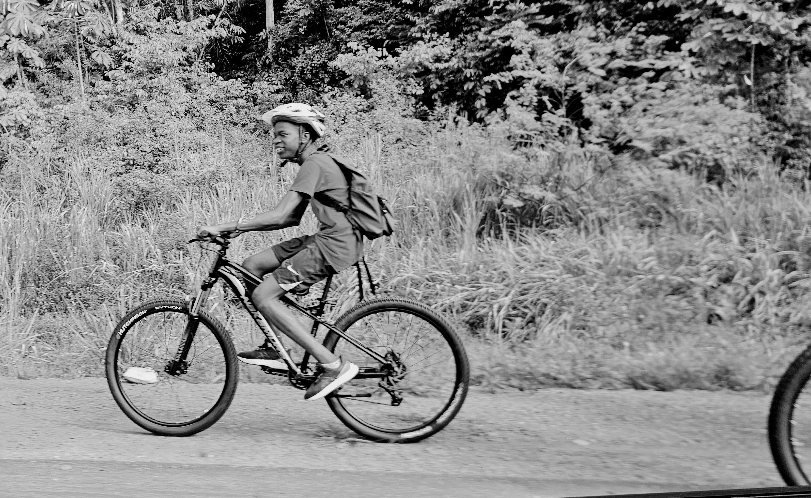 En équipes de quatre, deux élèves pédalent tandis que les deux autres courent, avec des changements réguliers tout au long du parcours menant au parking de la Montagne des Singes.