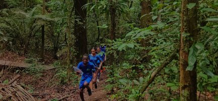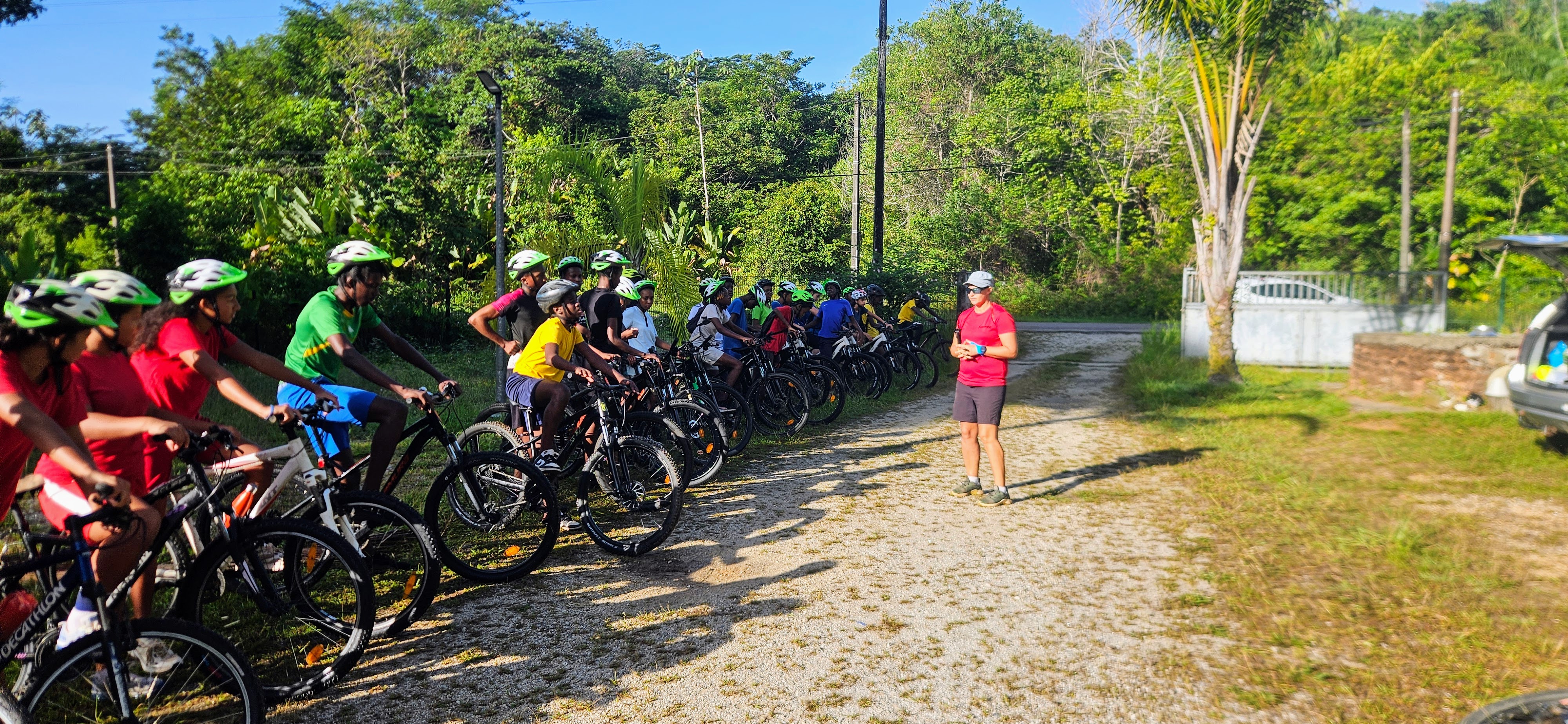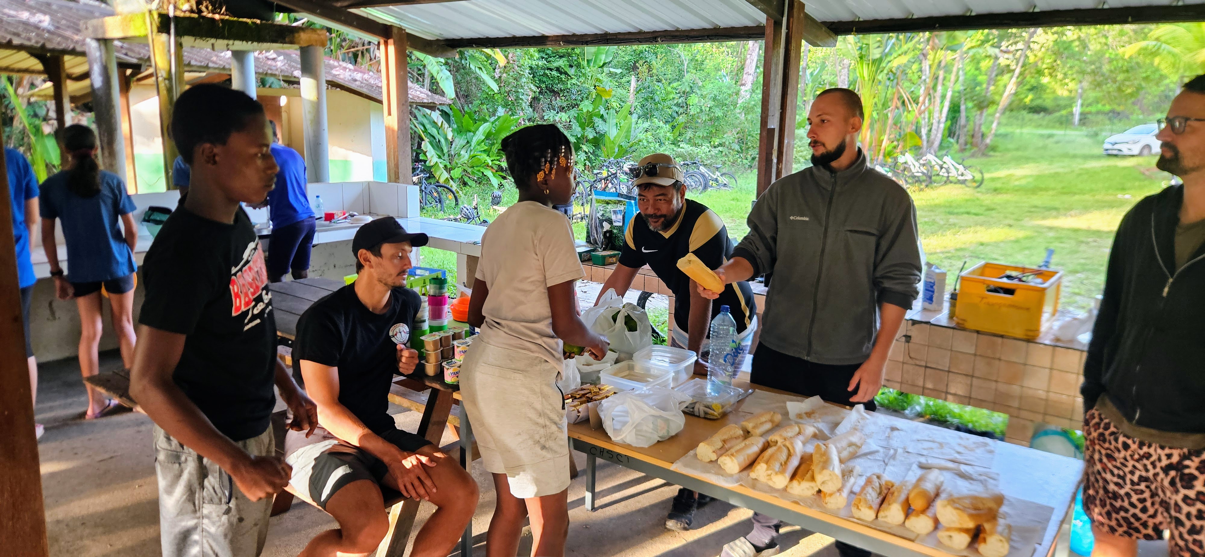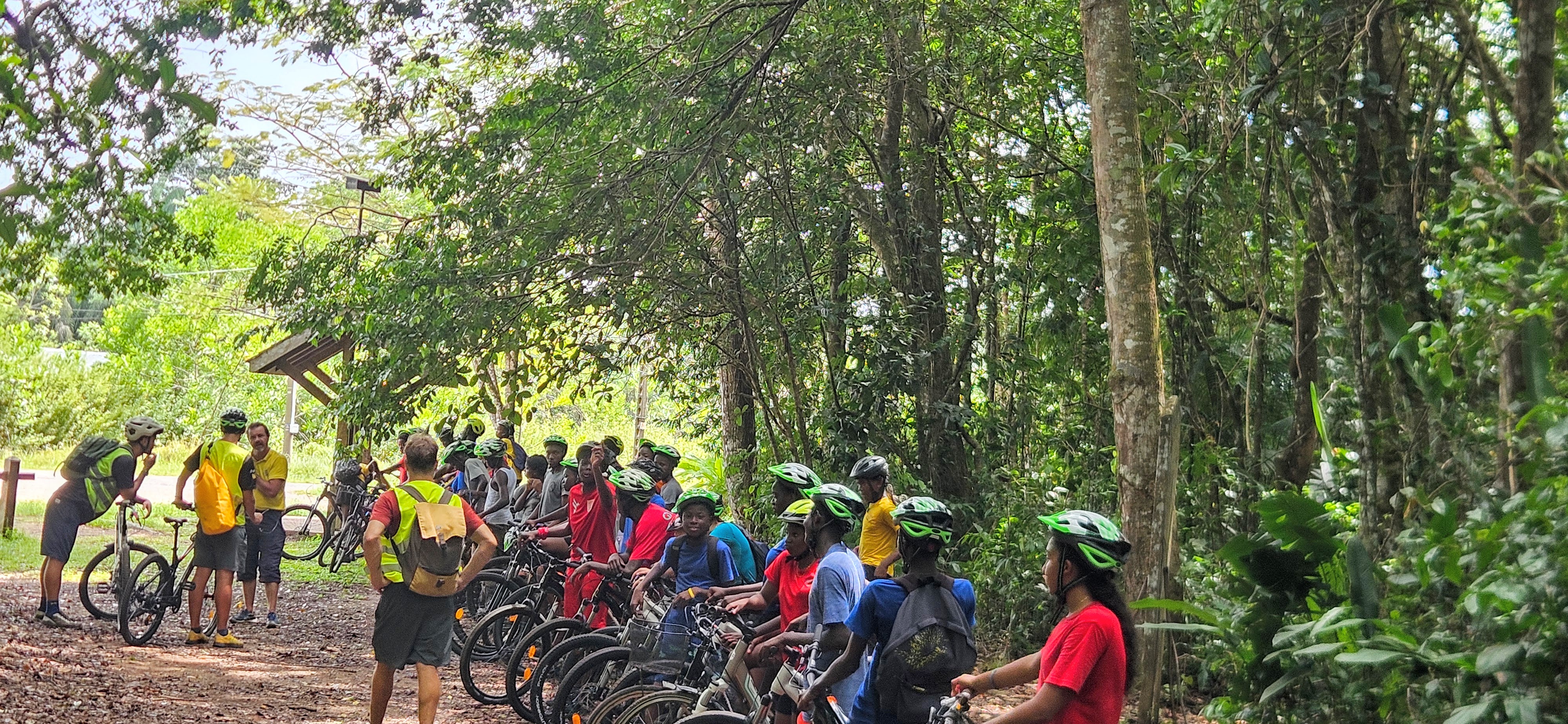Les équipes ont ensuite quitté le collège Victor Schoelcher pour gagner en VTT le parking de la Montagne des Singes. Le trajet, long mais plat, a permis d’installer un rythme collectif et de mobiliser les premiers efforts de la journée.